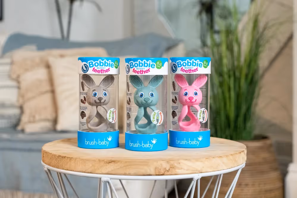 At brush-baby, we’ve designed products specifically to support teething and oral health development for babies. Here are a few items to help make this process a little smoother:
