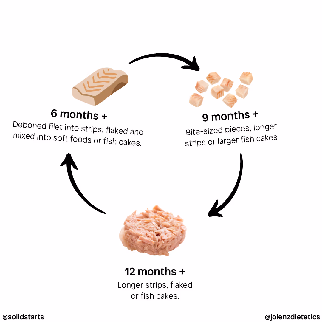For early introductions, you can bake, poach, or grill the fish and cut it into finger-sized pieces that your baby can grasp (using the Parmar grip). Remember when choosing fish for your little one, go for a boneless option with no added flavouring or seasoning.