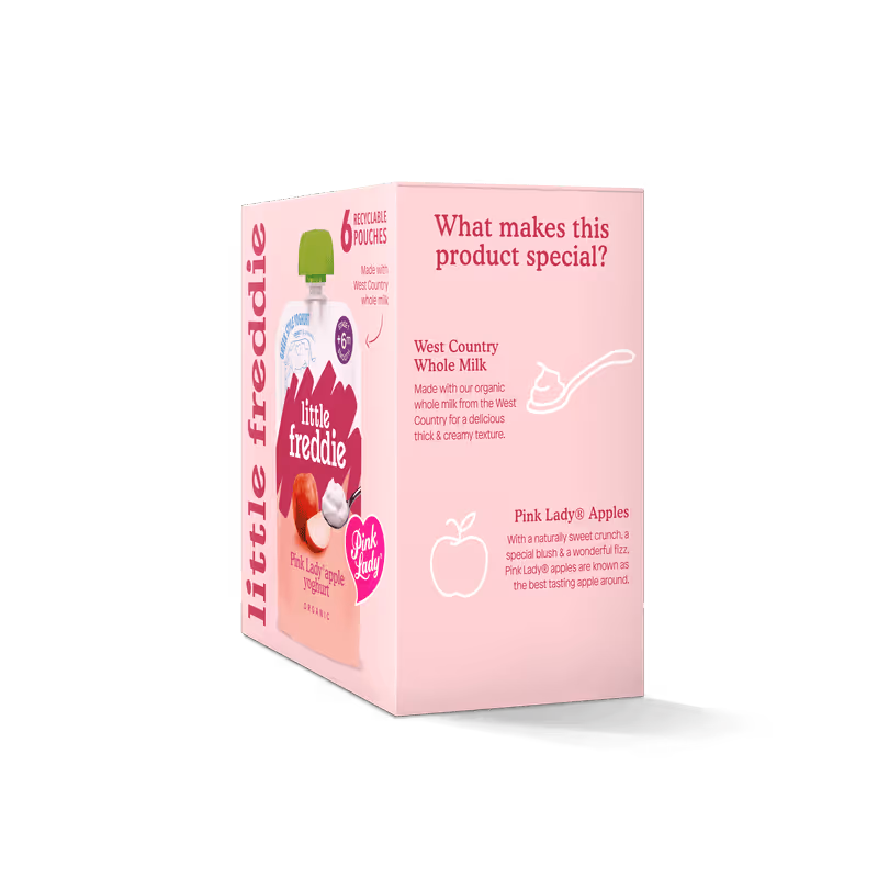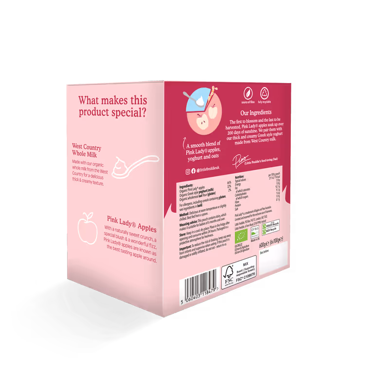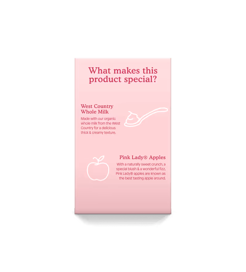 By harvest time, the trees are laden with crisp, rosy coloured Pink Lady® apples, which we use in this yoghurt. In fact, we’re the only baby food company to be allowed to use these unique apples.